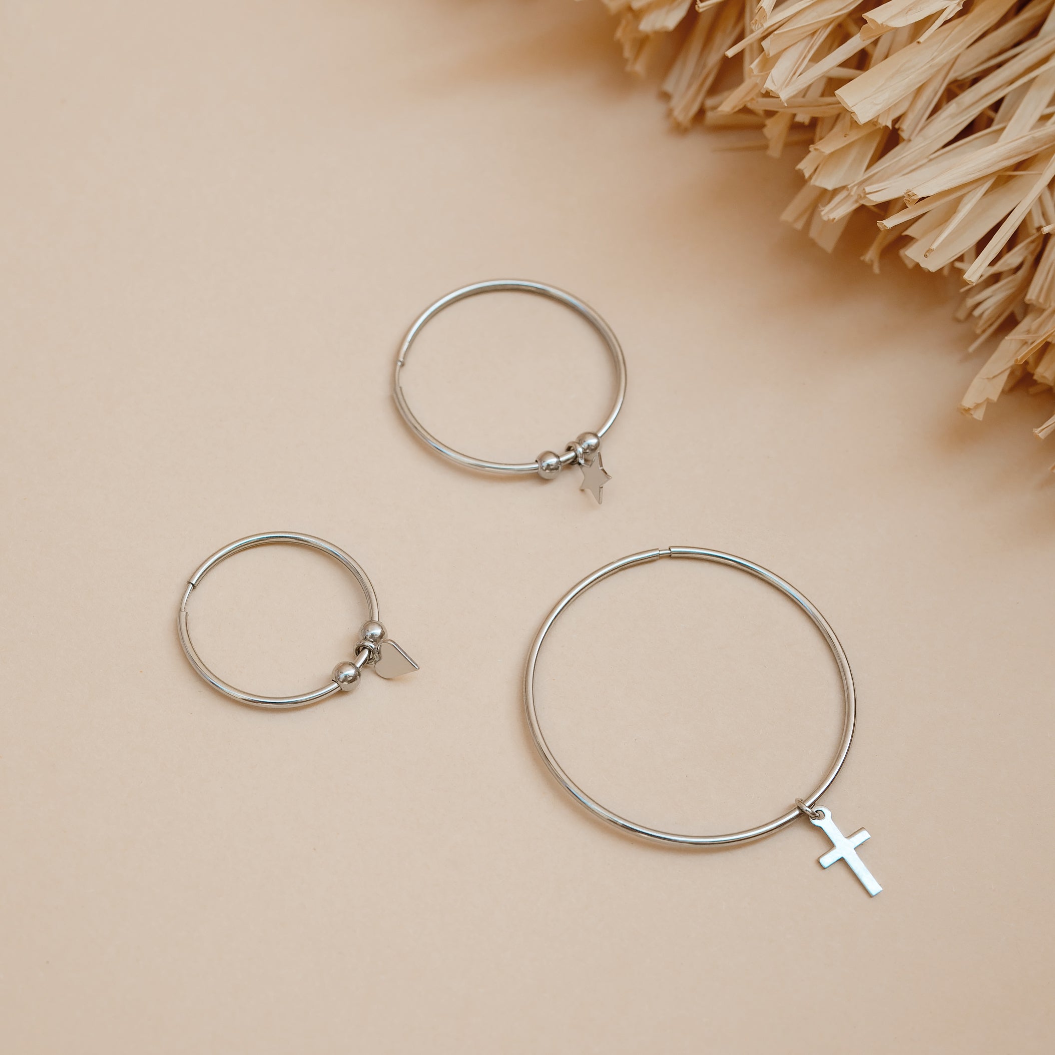 Tanke srebrne naušnice ringovi (karike) tanjeg profila koje su vječno IN. Možete ih nositi same ili stilizirati sa različitim privjescima i nositi nekoliko komada na uhu nako imate više probušenih rupica.