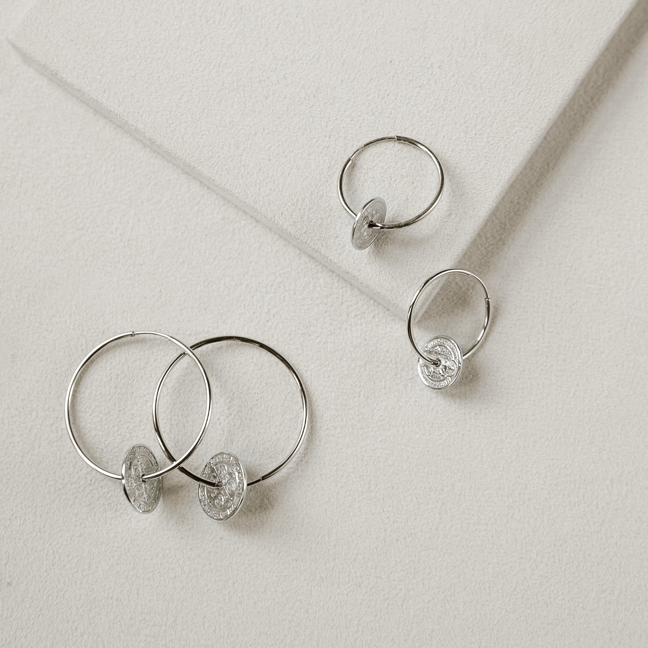 Moderne srebrne ringove ove sezone okitili smo malim medaljonima sv. Benedikta. Jako efektne, a opet minimalisticke estetike, ove srebrne naušnice zadovoljit će svačiji ukus.