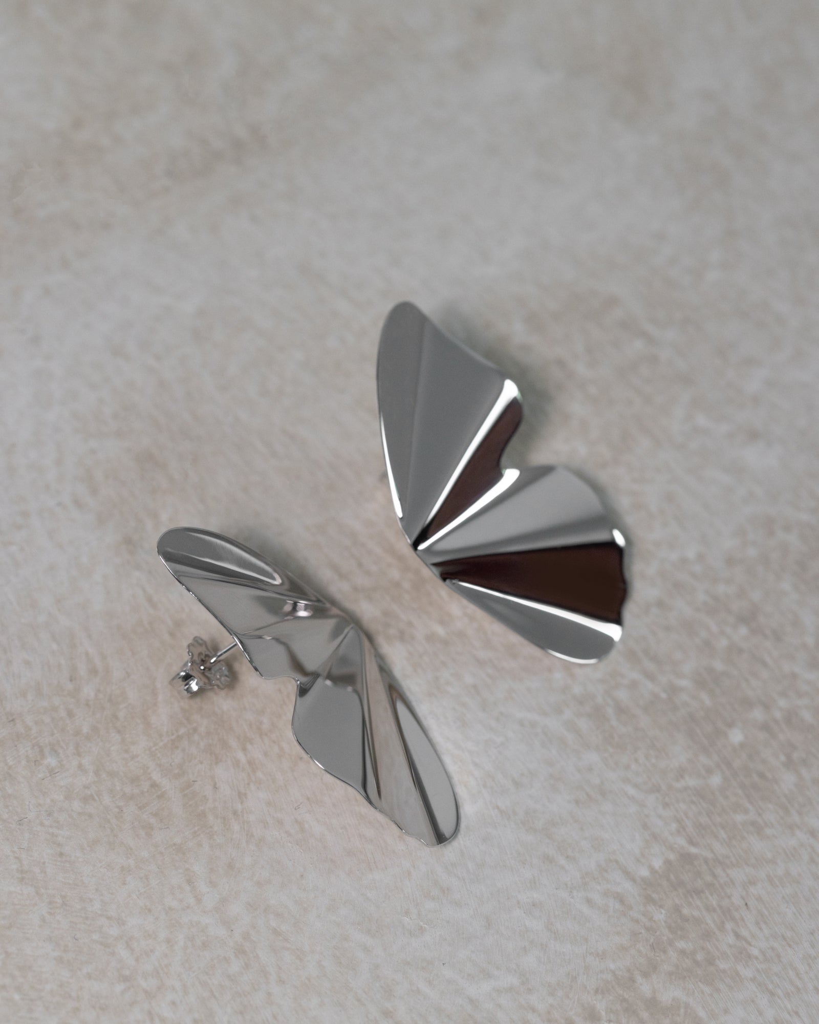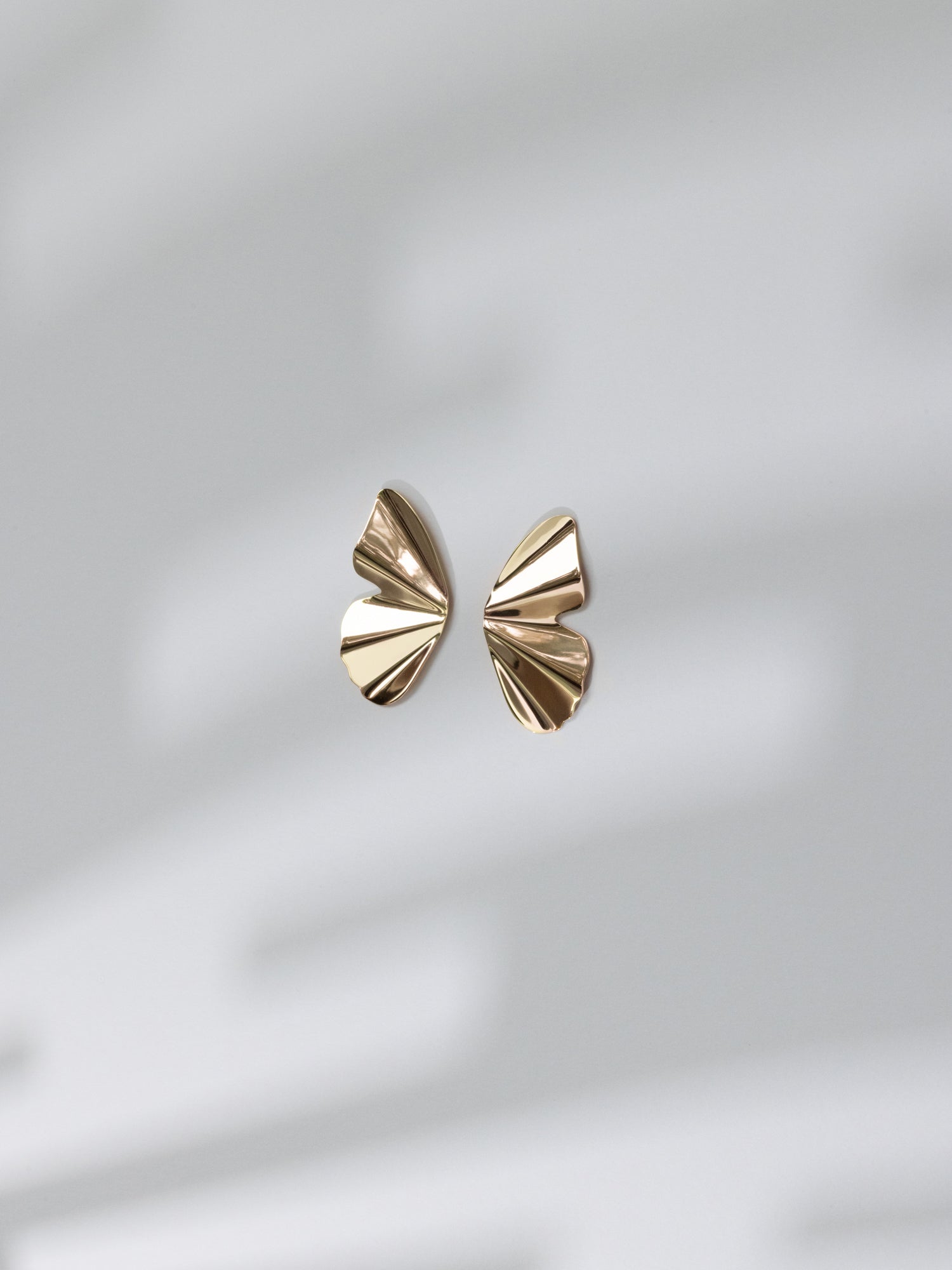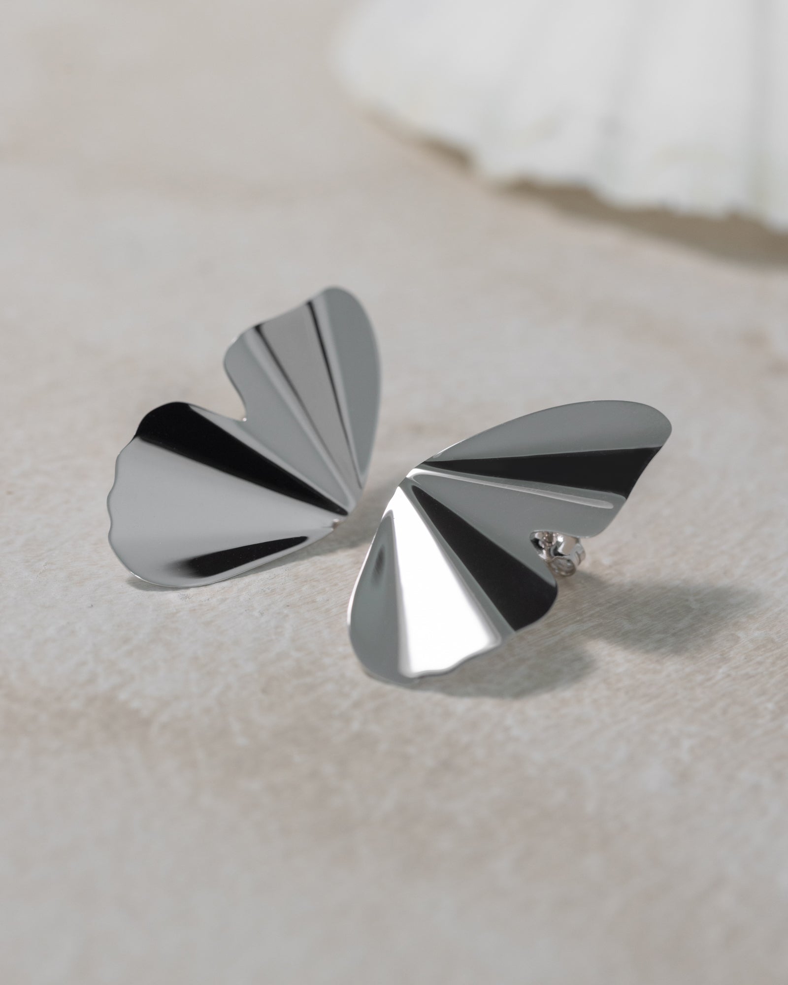Naušnice koje oduzimaju dah — dvije precizno oblikovane polovice leptira, savršeno dizajnirane da se prilagode lijevom i desnom uhu, stvarajući senzacionalan efekt. Njihova glatka i sjajna površina reflektira svjetlo na najupečatljiviji način, dok minimalistički dizajn ostavlja snažan dojam. Dostupne u pozlaćenoj i srebrnoj verziji.