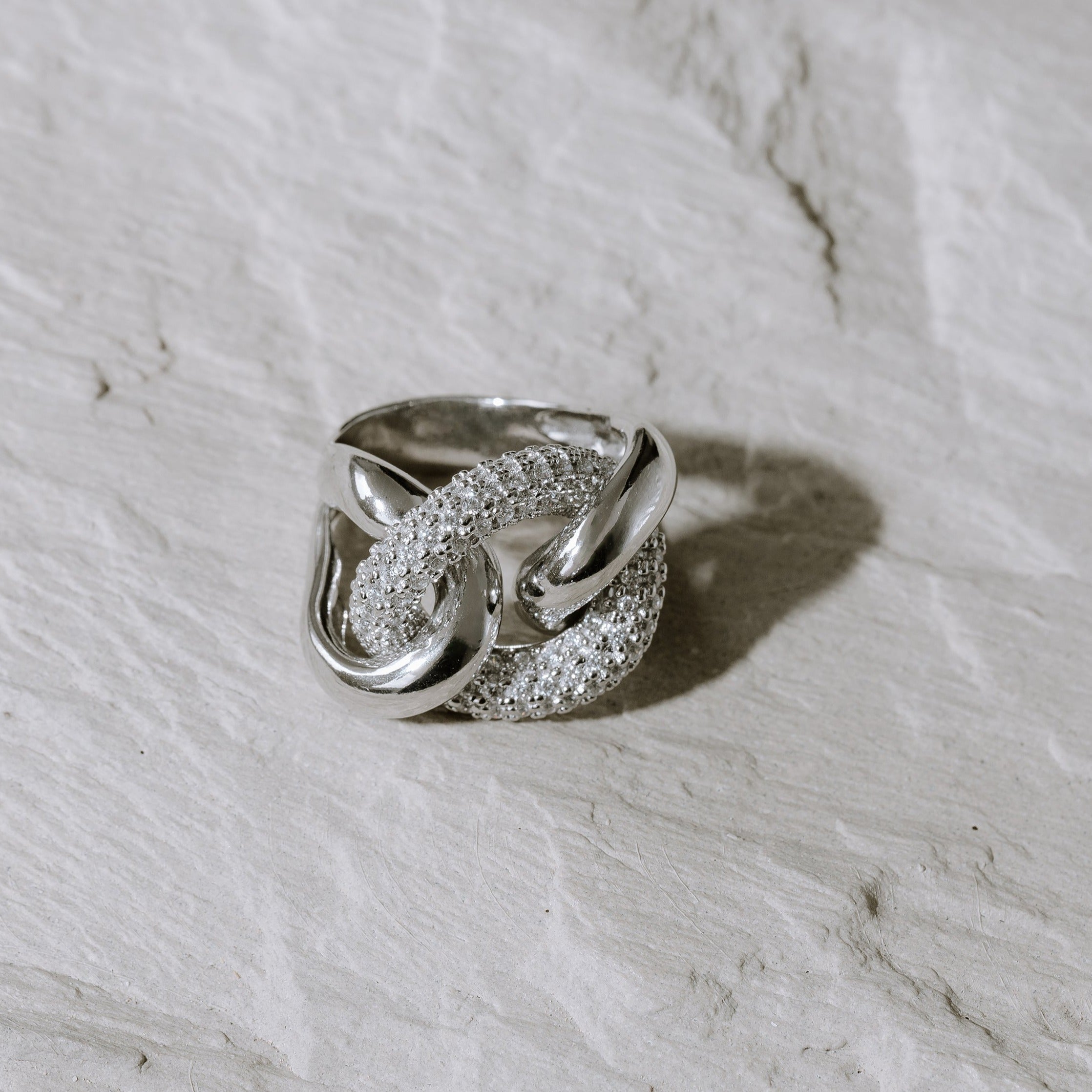 CInema prsten kombinacija je srebra 925 i premium prirodnih cirkona. DIzajn inspiriran pancer ogrlicom iznjedrio je glomazan, poseban prsten koji savršeno stoji na ruci. Prsten je moderan idealan za svečanije prigode.