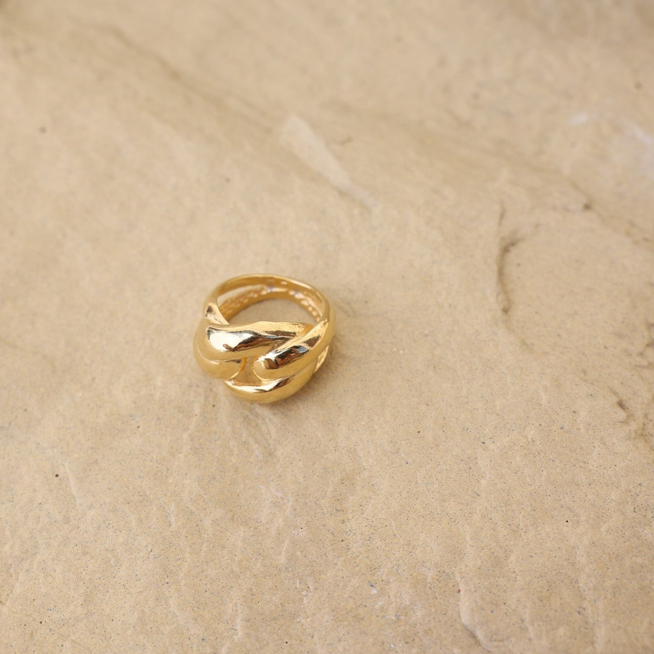 Srebrni pozaćeni prsten Cuban Chain Ring chunky je komad nakita. Prsten iako je glomazniji prati linije prsta i ne strši. Može se nositi samostalno na ruci ili u kombinaciji sa drugim prstenje.