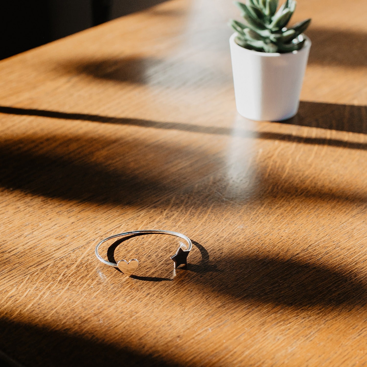 Srebrna narukvica izrađena ručnim radom s motivom srca i zvijezde. Naša standardna veličina je 17cm u opsegu. Ako mislite da Vam treba veća ili manja veličina molimo Vas da nam napišete opseg ruke u napomeni prilikom check.outa.