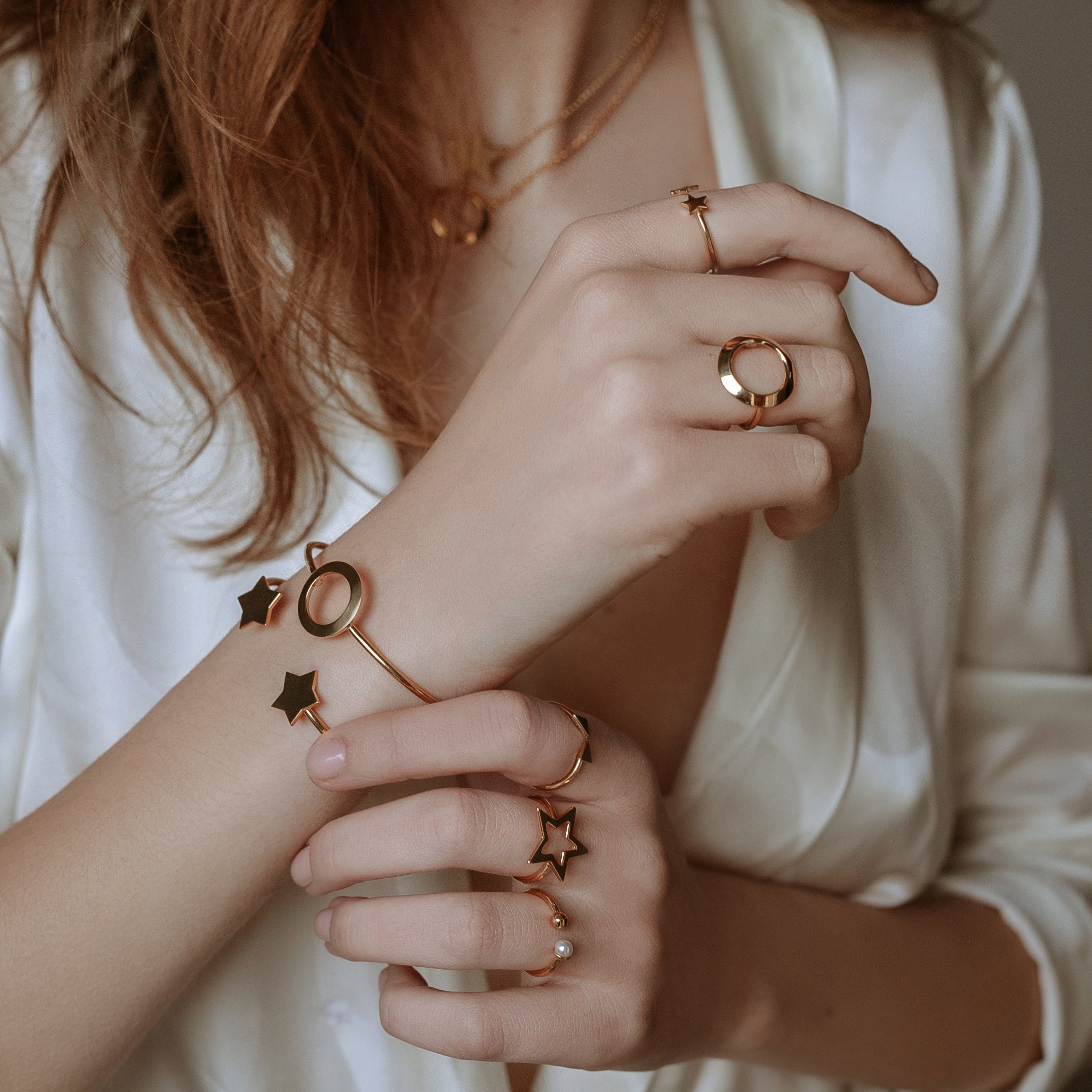 Kruta narukvica sa zvijezdama je čisti rock'n'roll na Vašim rukama. Ona je deblja od naše Edgy Pearls open cut narukvice i konkretnija. 'Komad nakita' koji plijeni pažnju. Za zvijezdu u Vama, ova narukvica je idealna.