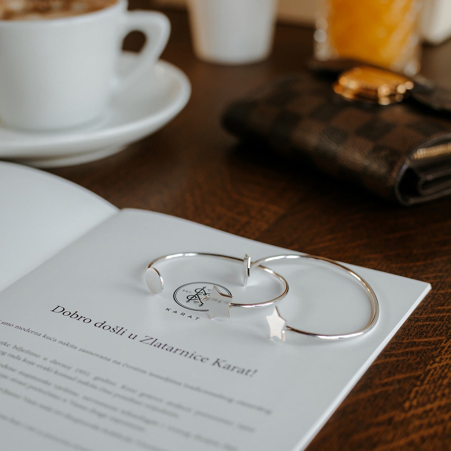 Prekrasna narukvica s motivom zvijezde i kruga spoj je kolekcije 'Like a Star' i 'Geometry'. Narukvica je izrađena ručnim radom. Otvorenog je tipa što znači da se može prilagoditi za dva do tri broja.