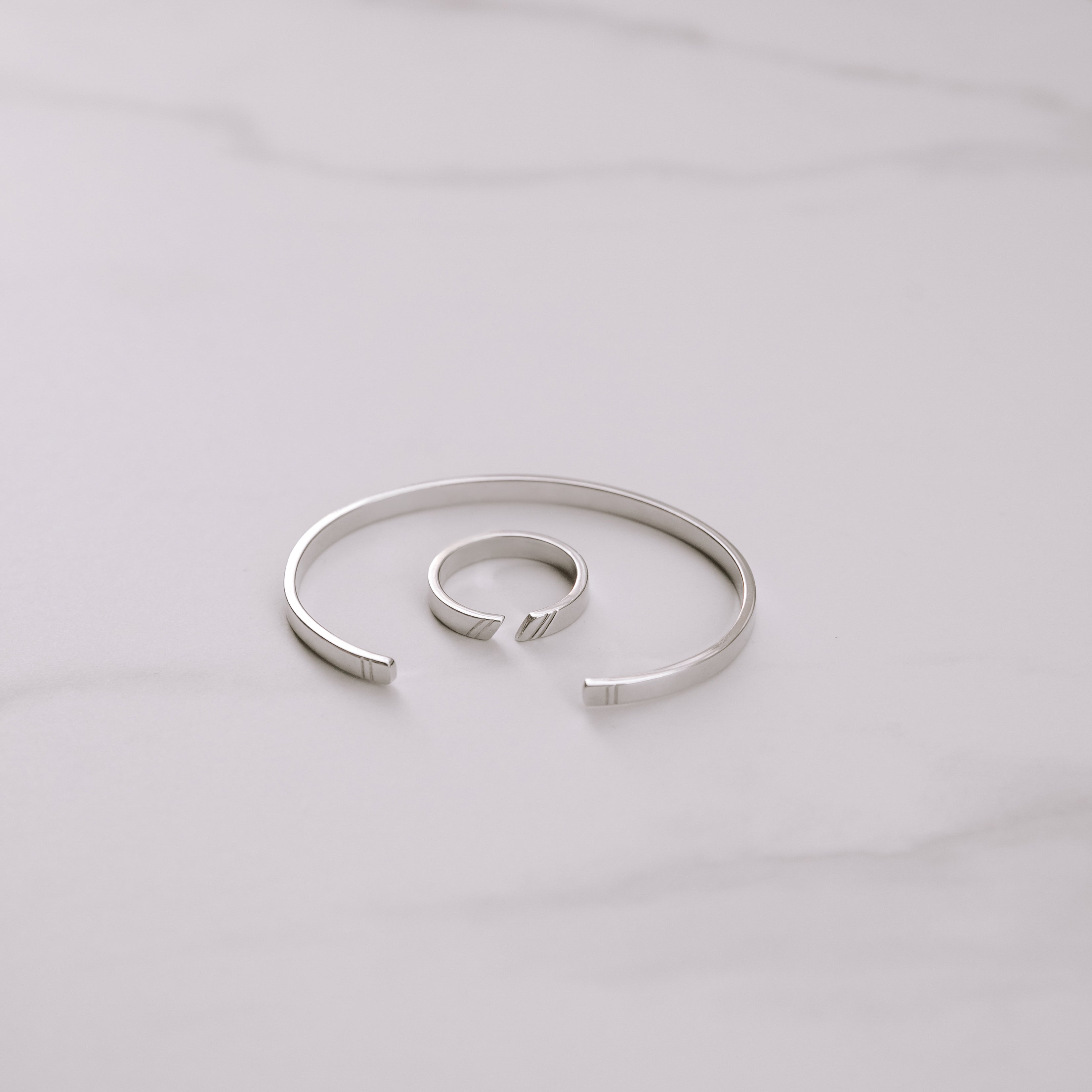 Muška srebrna narukvica otvorenog dizajna moderni je remake klasične 'rajf' narukvice. Idelanih je dimenzija za nošenje uz sat ili uz druge narukvice. Narukvica je prilagodljiva (do 4cm) tj odgovarat će svakoj dimenziji ruke.