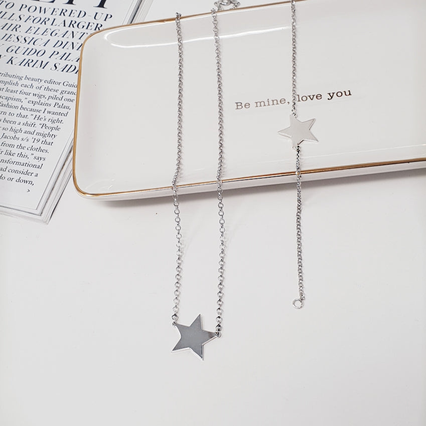 Jednostavna srebrna ogrlica sa zvijezdicom koja se prekrasno kombinira sa identičnim naušnicama i narukvicom.