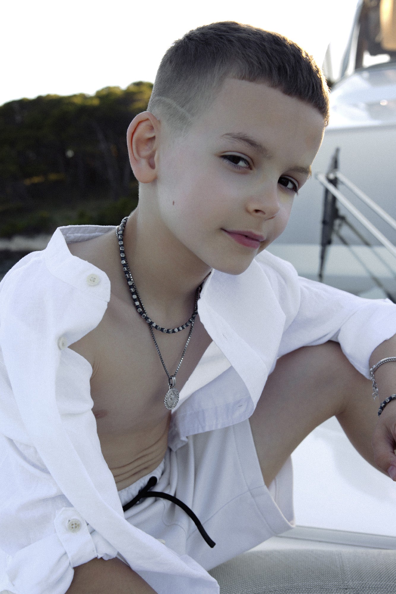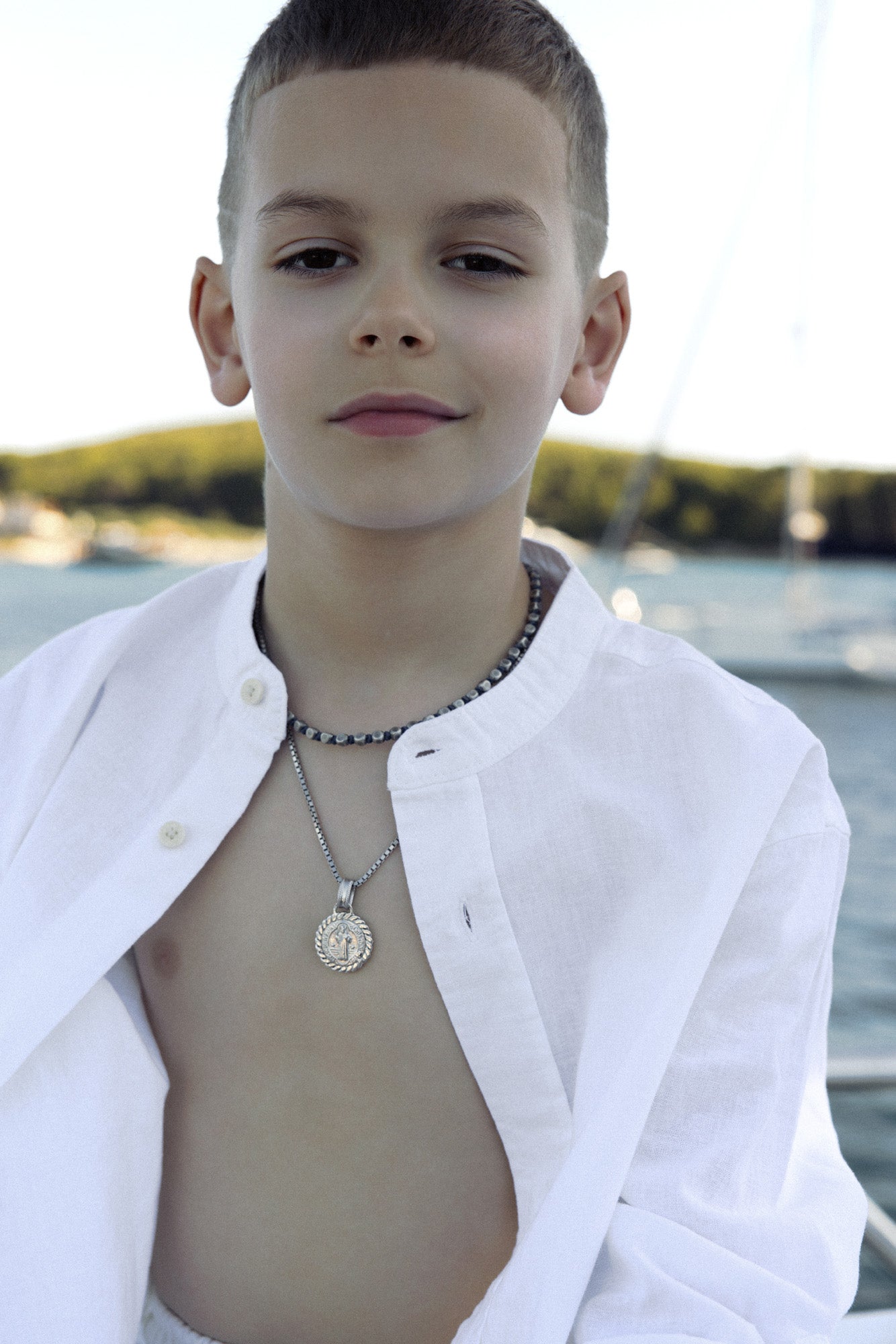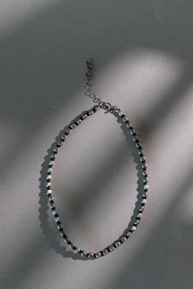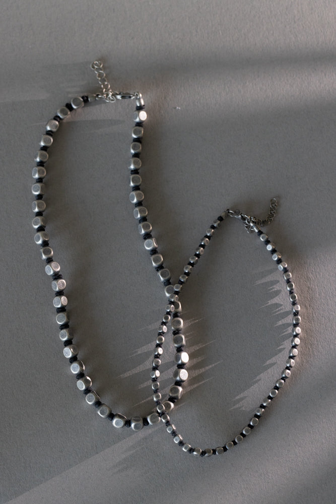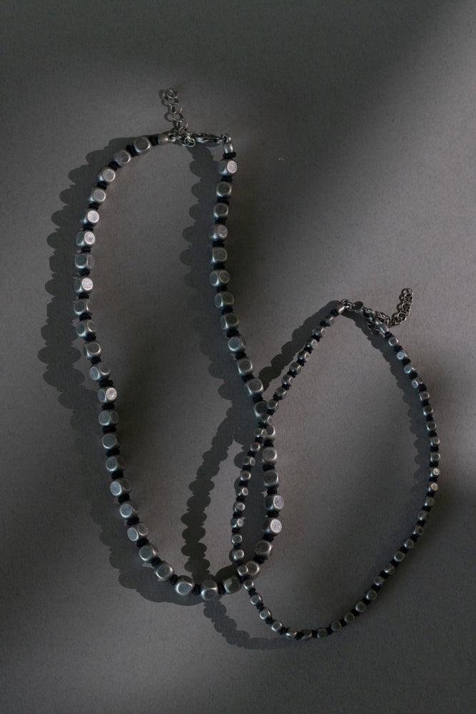 Ogrlica je izrađena od srebrnih, grubo obrađenih srebrnih kuglica/kockica koje daju dojam industrijskog šarma, spojenih čvrstom špagom dostupnom u crnoj ili tamnoplavoj varijanti.Zatvara se srebrnom kopčom s lančićem za podešavanje duljine. Razlika između Junior ogrlice za sinove u odnosu na onu za tate je u dimenziji, junior je sitnija verzija ogrlice.
