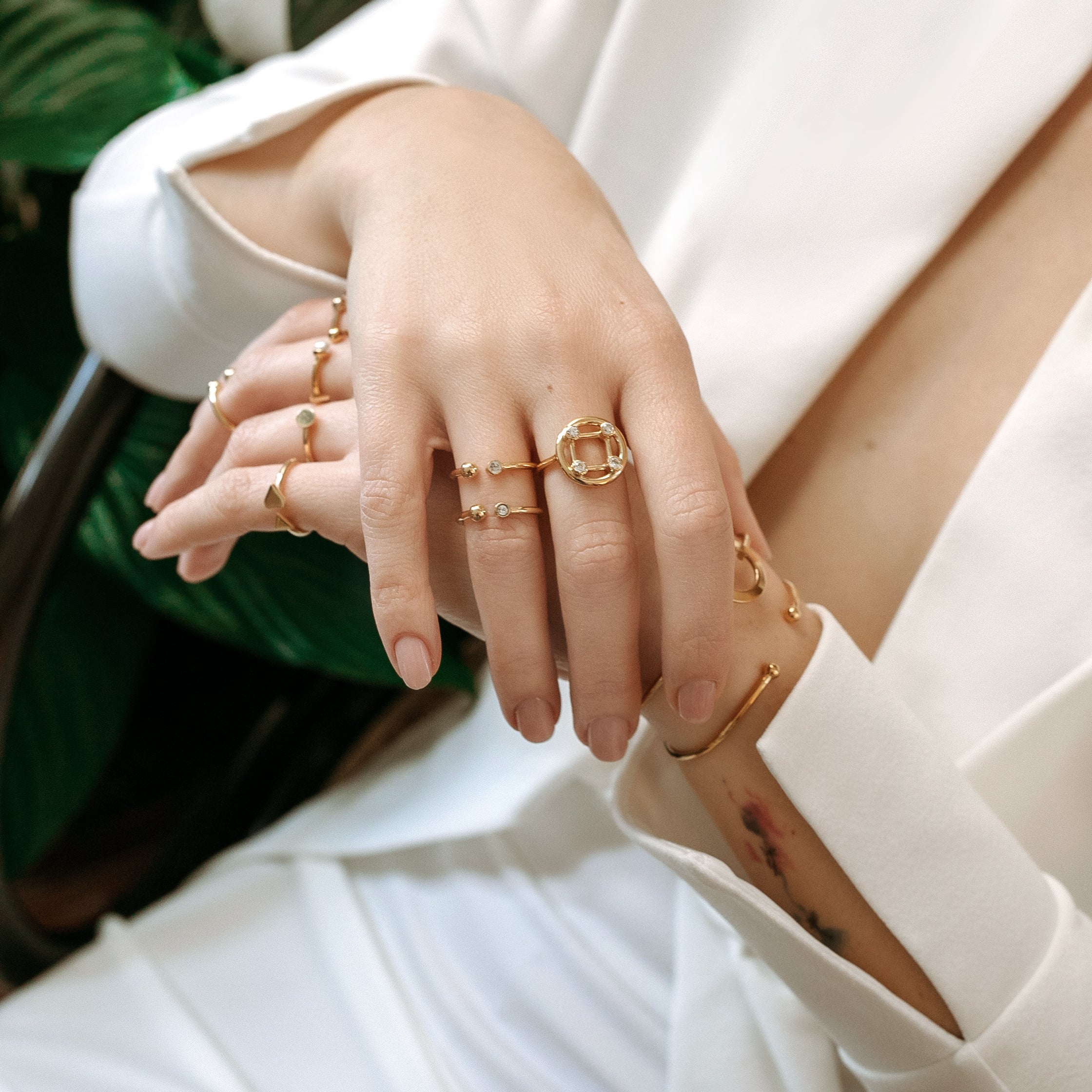 Inspiracija za ovaj prsten je Da Vincijev Vetruvijski čovjek. Kružnica i kvadrat u prstenu predstavljaju balans uma i tijela. Na njihovim dodirnim točkama ugrađeni su u okruglom fasungu prirodni cirkoni.